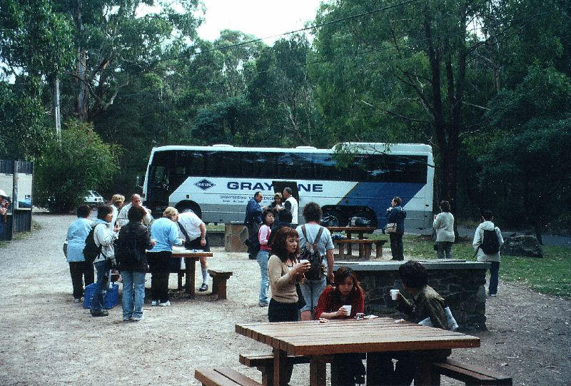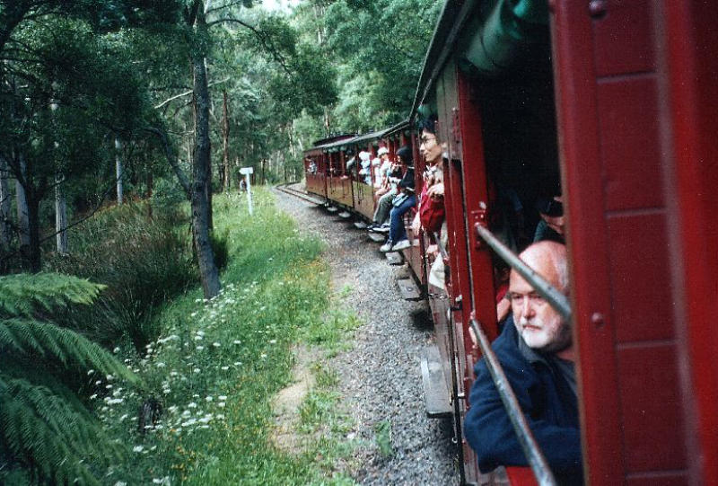 Nach dem Frühstück um 8 Uhr zur Bushaltestelle gegangen, richtigen Bus gefunden und Ausflug gemacht nach Puffing Billy Steam Railway,ein über 100 Jahre alter Zug, der uns ca. 1/2 Std. gemütlich durch die Gegend zockelte. Beine raushängen und aus dem Fenster lehnen erlaubt!Danach mit dem Bus wieder über Top of Dandenongs zurück in die City von Melbourne. Vor der Zugfahrt stand noch eine kleine Pause, in der uns der Busfahrer Billy-Tea zubereitete und Kekse und Kuchen gab!Dann kurz im Hotel verschnaufen.Danach an der Southbank langgebummelt, in den Queen Viktoria Gardensund weiter zum Royal Botanics Garden.Den aber nur teilweise geschafft (morgen kommen wir noch einmal), im Centre 1 Osterei gekauft, an Southbanks zu Abend gegessen (die vergaßen den Nachtisch zu berechnen) und ab ins Hotel. Sind heute beide müde!PS1: Polizei-Musikkapelle spielte flotte Musik an der Southbank „I feel like a woman“ von Shanaya Twain. Toll!!PS2: Der Yarra war heute voll von Ruderbooten, als wir dort bummelten. Eliteschulen und Ruderclubs schicken alle möglichen Ruderboote mit Besatzung auf den Weg.