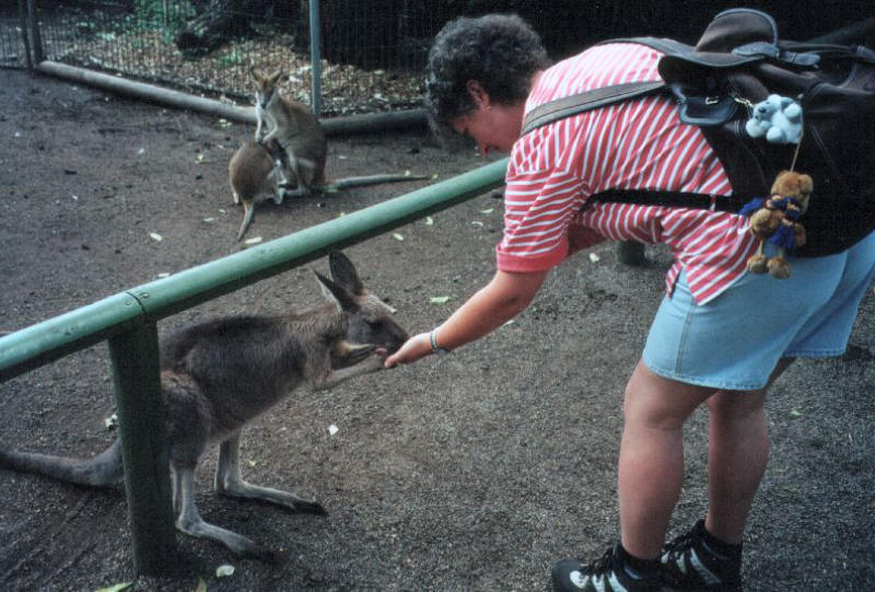 Krokodilburger), ein Aboriginie spielt Didgerido; 2