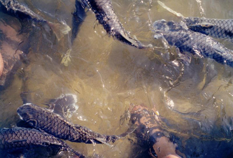 Weißbrot zum Füttern gibt`s umsonst! Die Fische nehmen es wirklich aus der Hand.