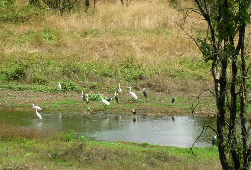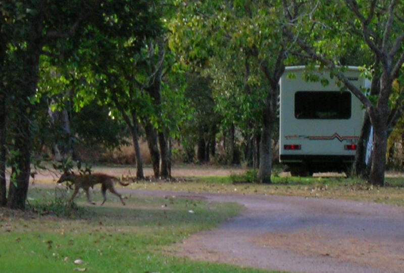 Wir fahren weiter zum Fogg Dam Conservation Reserve. Von den 2 Wanderwegen zum Bestaunen der zahlreichen Vogelarten war ein Weg gesperrt wg. Reparaturarbeiten. Längs des Dammes sind viele Tümpel mit Ibissen, Reihern, etc. Auf dem Rückweg haben wir neben dem Damm eine lebende Schlange gesehen! Und ein kleines Krokodil, das schnell im Wasser verschwand…Dann fuhren wir weiter zum Burgeressen im Barra Hut Inn. Die Toiletten hier sind in einem desolatem Zustand! Danach Weiterfahrt zum Aurora Campingplatz im Kakadu NP. Wir tanken für 110 AU$ nach 411 km! Soviel kostet es also, wenn man seinen Kühlschrank und sein Bett immer dabei hat! Die Zufahrt zum Twin Falls und Jim Jm Falls sind noch gesperrt bis „late June“ wg. Reparaturarbeiten an der 4wd Strecke nach massiven Unterspülungen in der Regenzeit. Und ein 3,60 m langes Krokodil wurde auch noch eingefangen…Morgen fahren wir wohl auf Asphalt weiter, sonst müssten wir ziemlich weit zurück bis zur Old Jim Jim Road und so könnten wir gleich noch in Jabiru gucken wg. einer Flugmöglichkeit für A., der sich die Wasserfälle von oben ansehen möchte.PS: ein Frosch war auf der Damentoilette im Papierhandtuch Behälter und sah mir beim Händewaschen zu !