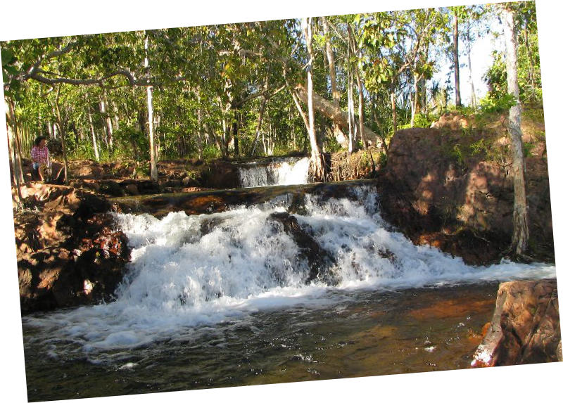 Wir sind gleich nach dem Frühstück aufgebrochen und in den Litchfield Park gefahren.Unsere erste Station ist Buley`s Rock Hole und da bin ich umgeknickt und doll gestürzt: linkes Knie aufgeschlagen und ein schmerzendes rechtes Sprunggelenk. Gleich im Wasser gekühlt. Hoffentlich ist es nichts schlimmes! Im Auto haben wir noch Eisgel und eine Elastikbinde.Weiter nach Greenant Creekund den Tjaetaba Falls, aber da konnte A. nicht schwimmen. An den Tolmer Falls waren wir auch.Bei den Wangi Falls war das Gelände weiträumig abgesperrt wg. eines gesichtete Krokodils.Ubernachtet im Wangi Tourist Park.PS: Der Platz hier ist sehr einfach und man hört permanent das Aggi des Betreibers zur Stromerzeugung. Manchmal gibt’s in den Duschen auch nur noch kaltes Wasser…Abends fliegen hier die Fledermäuse rum und morgens sehen wir Regenbogenpapageien. Und als wir weiter fahren hoppeln vor uns 3 Kängurus über die Straße.