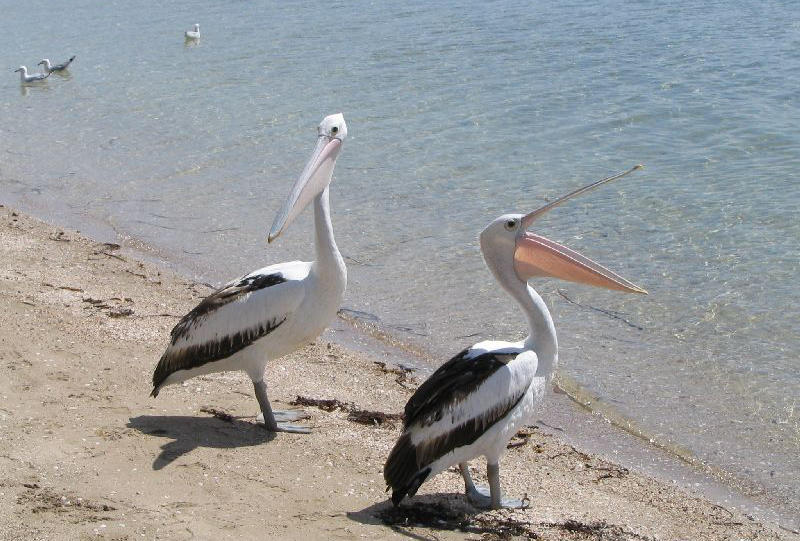 Am Strand gibt es viele Möwen, Pelikane und auch Muscheln. Hier ist ein beliebter