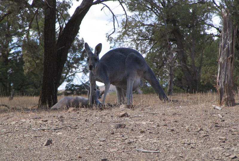 Wir fahren pünktlich ab nach Wilpena Pound. Die Strecke dorthin ist fast komplett unsealed. Sehr schöne Abschnitte, wo man Landschaft, Emus, Kängurus und Vögel bewundern kann. Und ein sehr schwieriger Abschnitt (Bunyeroo Yalley), wo wir praktisch über die Steine im trockenen Flussbett fahren mussten, aber auch keine Wendemöglichkeit mehr hatten. Kaffeepause am Wasserloch mit Kängurus. Was für ein Fahrzeug…..er hätt uns ja auch eben im Flussbett m Stich lassen können…..hat er aber nicht! Guter Camper!!In Wilpena Pound um 15 Uhr der nächste Schock: wir können nur für 1 Nacht (für 26 AU$) einen Platz mit Strom bekommen. Alles voll!Der Pound ist oben am Rand 18x5 km und unten im Kessel noch 4x9 km. Höchster Gipfel im Gelände ist der St. Marys Peak mit 1.200 m.Um 19.30 Uhr ist es stockdunkel und sehr kühl. Lange Wege zur teuren Laundry (Wäsche für 3,60 AU$). Hier sind die Dusch/Waschräume und die WC’s alles offene Gebäude ohne Eingangstüren. Also etwas schneller duschen bei der Kälte! Und die Kängurus kommen bis an den Camper. Oder liegen irgendwo faul rum.